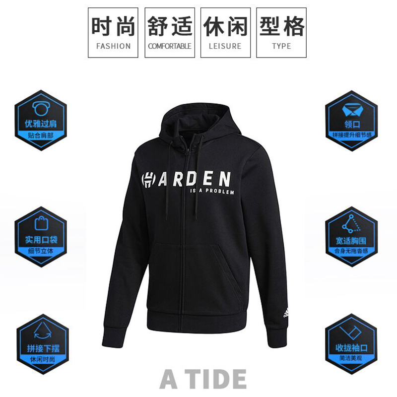 速捷运动专营店阿迪达斯 HARDEN FZ 男子哈登运动休闲连帽长袖夹克外套 DW873860%棉 40%涤纶 哈登标识 连帽透气